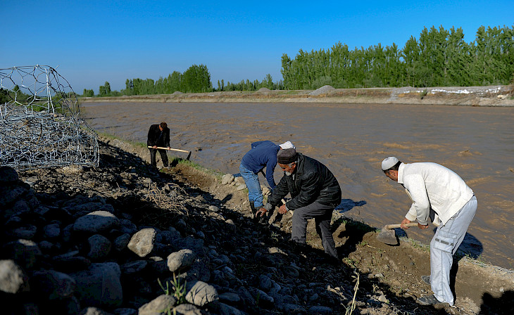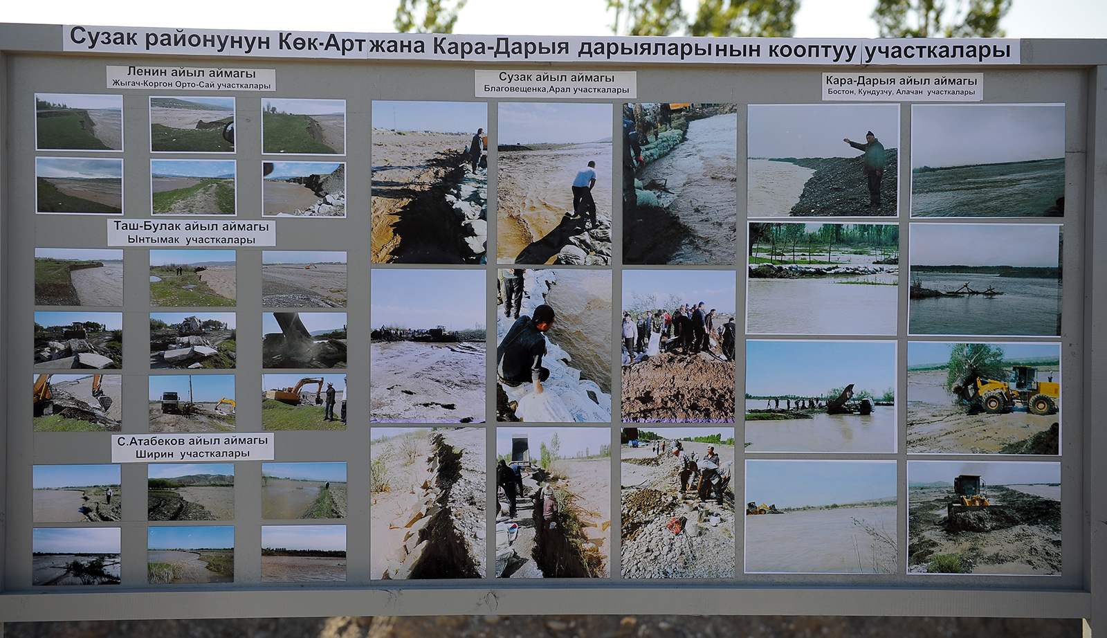 Ал маалымдагандай, Сузак айылдык аймагында 2017-жылдын 18-23-апрелде жааган жаандын жыйынтыгында жалпы 1700метрлик дамбанын 152метрин жууп кеткен. Благовещенск айылында дагы тынбай жааган жаандын кесепетинен 6900метр дамбанын 360метрин жууп кеткен. Равшанбек Рысбаев бүгүнкү күндө жээктерди керектүү жабдуулар менен тосуу иштери толук жүрүп жатканын, ал үчүн бардык керектүү каражаттар жана техникалар жетиштүү экенин баса белгиледи.