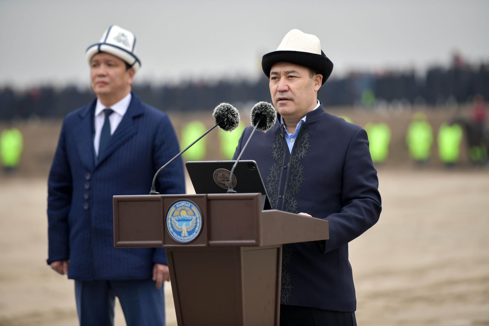 Жаңы ат майдан курула турган жерде чогулгандардын алдында сөз сүйлөп жатып, Садыр Жапаров жакшынакай саамалыкта - күн менен түн теңелип, жандануунун башаты болгон Нооруз майрамында бардыгы менен жүз көрүшүп жатканына кубанычта экенин билдирди.