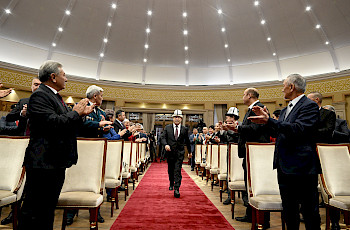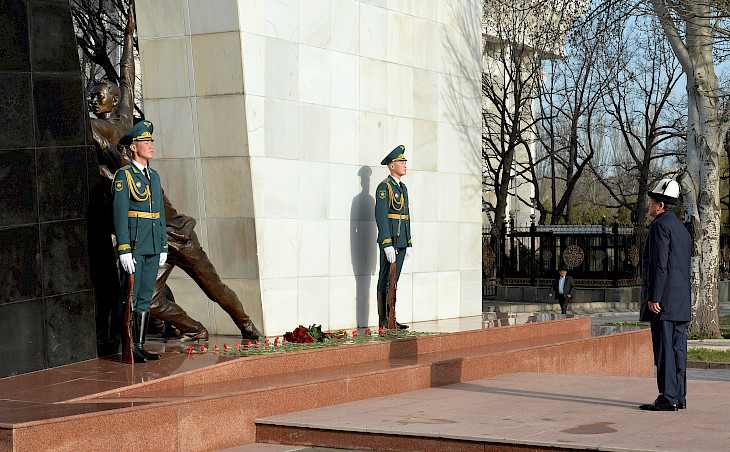 Мамлекет башчысы 2002-жылдагы Аксы окуясында жана 2010-жылы Бишкек шаарынын «Ала-Тоо» аянтындагы Апрель окуясында эркиндик үчүн курман болгондордун элесине арналган монументке гүл койду.