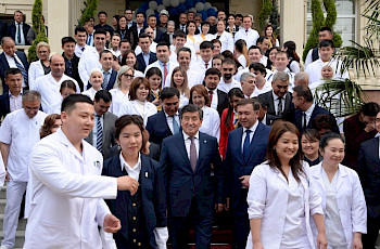 Андан соң, мамлекет башчысы Кыргыз Республикасынын айыл чарба кызматкерлеринин күнүнүн 95 жылдыгына жана агроөнөр жай тармагынын кызматкерлеринин кесиптик майрамына арналган салтанаттуу иш-чарага катышты.