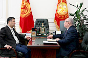 Бишкек, 20.04.23. /Кабар/. Президент Садыр Жапаров бүгүн, 20-апрелде, КР президентине караштуу Мамлекеттик тил жана тил саясаты боюнча улуттук комиссиянын төрагасы Каныбек Осмоналиевди кабыл алды.