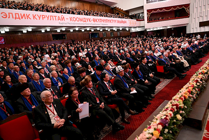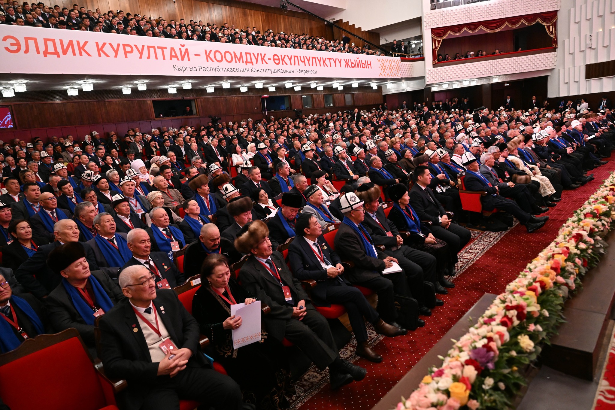 III Элдик rурултайга 698 делегат, анын ичинде чет өлкөдөгү эмгек мигранттарынын жана этникалык жамааттардын делегаттары катышууда. Мамлекет башчынын атынан эң улуу делегат 98 жаштагы Улукбек Эргешевге белек тапшырылды.