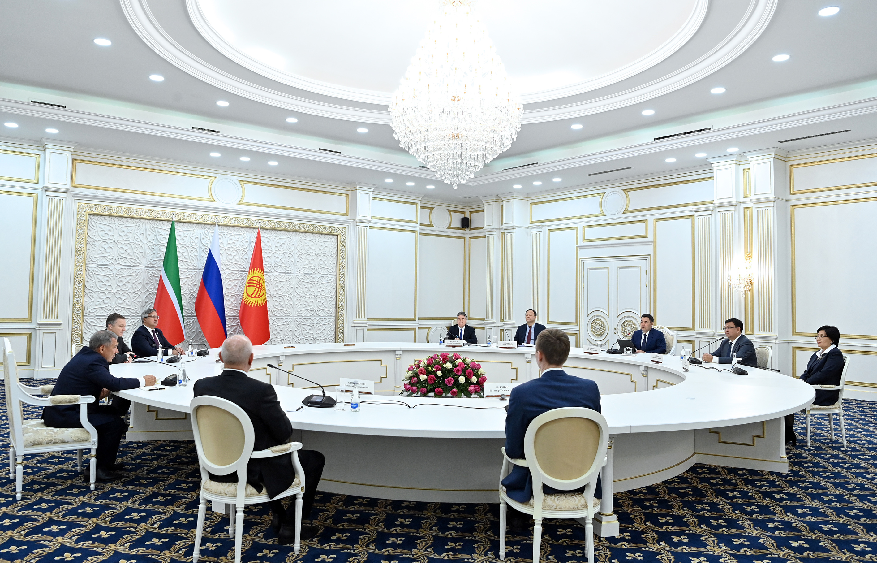 Мамлекет башчысы Рустам Минниханов менен жылуу учурашып, Кыргызстанды Россия менен союздаштык жана стратегиялык өнөктөштүккө негизделген өзгөчө мамилелер байланыштырып тураарын белгиледи. Кыргызстан аларды ар тараптуу бекемдөөнү жана өнүктүрүүнү көздөйт, анын ичинде регион аралык активдүү өз ара аракеттенүүнүн алкагында да.