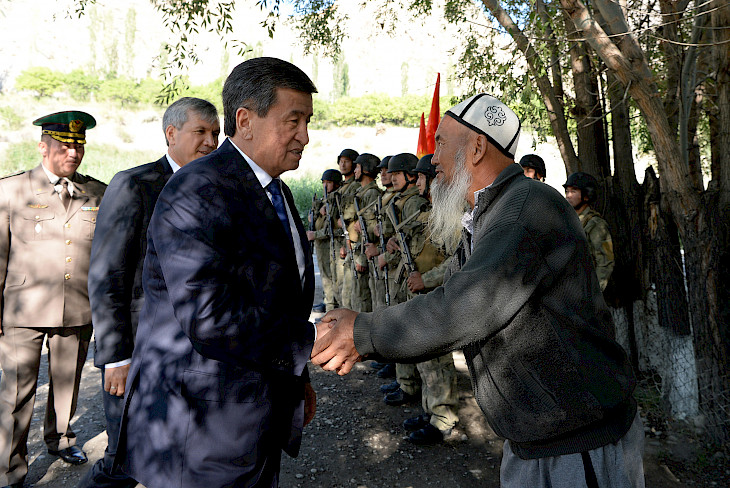 Жергиликтүү тургундар менен жолугушууда Сооронбай Жээнбеков Баткен облусунун чек ара аймагындагы кырдаал өзүнүн жеке көзөмөлүндө турганын белгиледи.