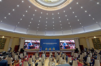 Президент сөз башында тоо-кен жана башка кен өндүрүү тармагындагы маселелерди айтып өттү. Ал тоо-кен тармагынан түшкөн кирешелер жылына дээрлик 12 млрд. сом экенин жана ал ички дүң продукциянын 8%ын, ал эми энергетика тармак 44%ды түзөрүн белгиледи.