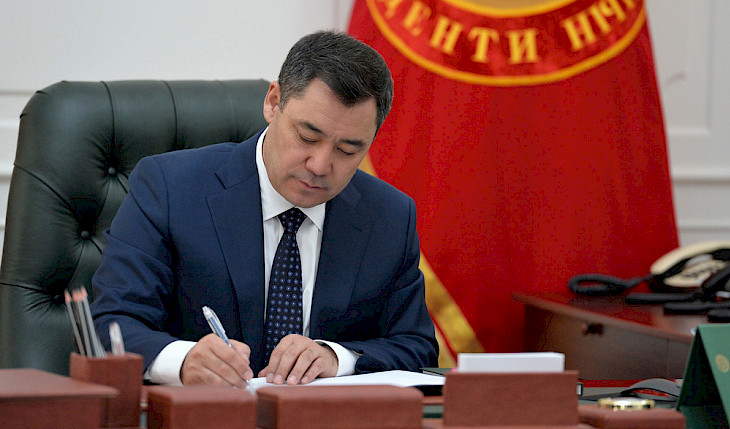 Бишкек, 12.03.21. /Кабар/. Кыргыз Республикасынын Президенти Садыр Жапаров «Кыргыз Республикасынын Конституциясы жөнүндө» мыйзам долбоору боюнча референдумду (бүткүл элдик добуш берүүнү) дайындоо тууралуу мыйзамга кол койду. Бул тууралуу президенттин аппаратынын маалыматтык саясат бөлүмү билдирет.