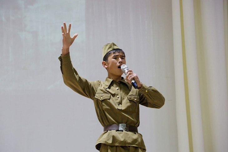 Сынакка өлкөнүн бардык аймактарынан тандалып келген 14 жаштан 18 жашка чейинки мектеп окуучулары үч номинация (“Аскер жылдарындагы ырлар, “Мекенчиликдик ырлары”, “Көркөм окуу”) боюнча өз өнөрлөрүн тартуулашты.