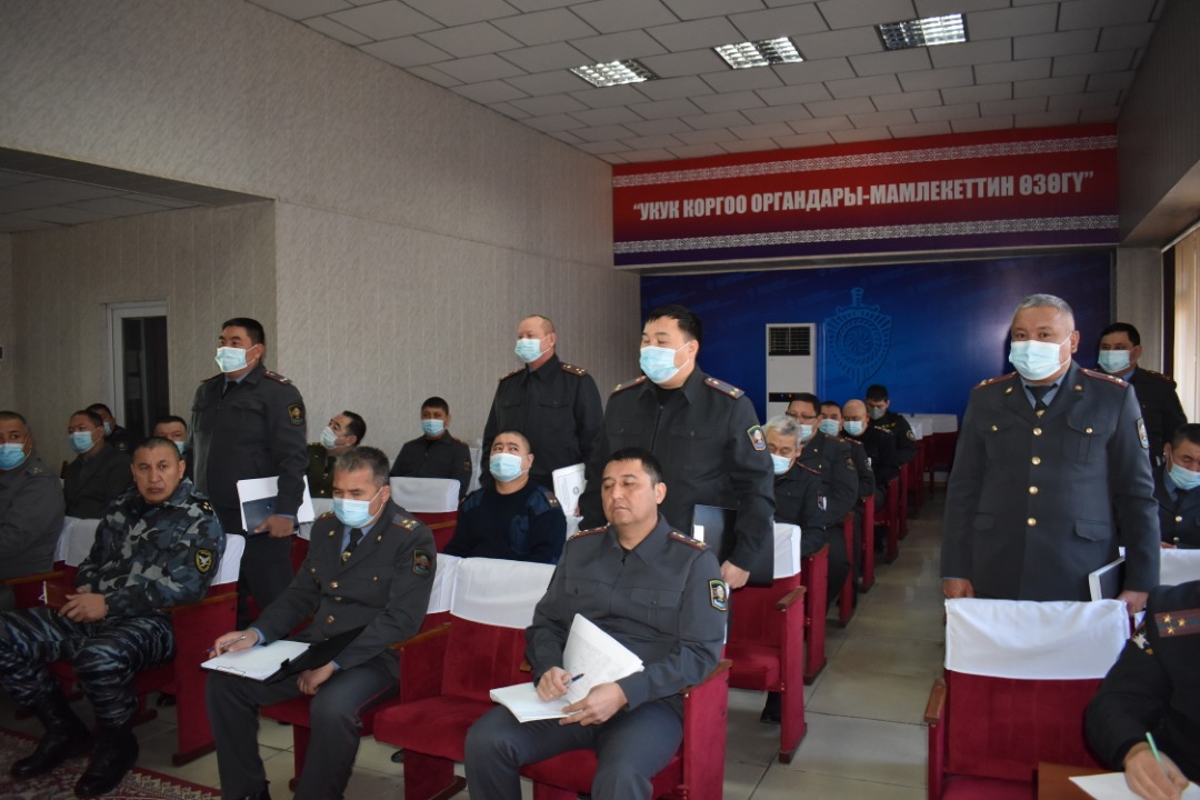 Бишкек, 12.01.21. /Кабар/. Ички иштер министринин биринчи орун басары Сүйүн Өмүрзаков өлкөнүн түштүгүндөгү ИИМдин күч түзүмдөрү менен жыйын өткөрдү, - деп билдирет министрликтин басма сөз кызматы.