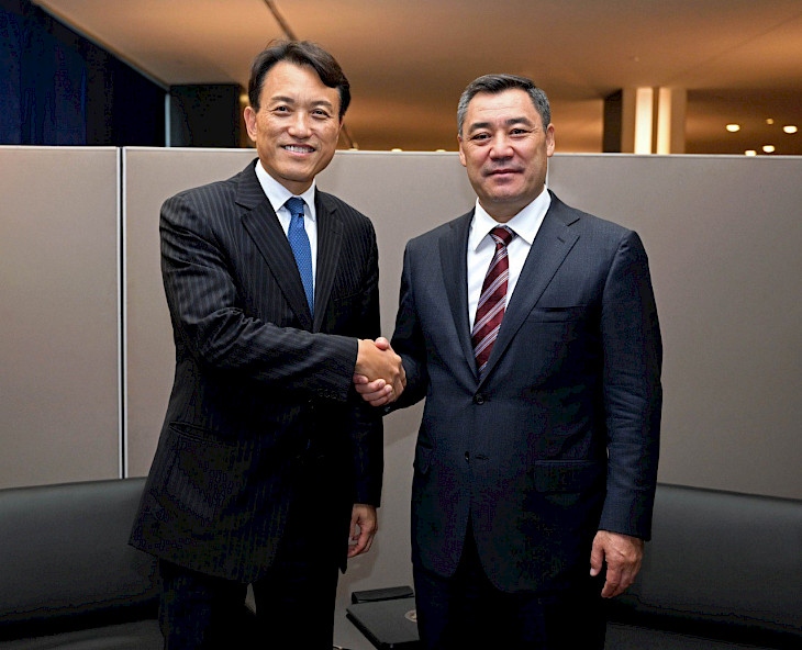 Бишкек, 19.09.23./Кабар/. Президент Садыр Жапаров Нью-Йорк шаарында (АКШ) өтүп жаткан БУУнун Башкы Ассамблеясынын 78-сессиясынын Жогорку деңгээлдеги жумалыгынын иш-чараларына катышуунун алкагында Азия Өнүктүрүү Банкынын (АӨБ) Башкаруучу башкы директору Вуучонг Ум менен жолугушту.