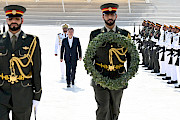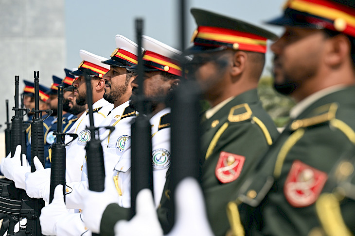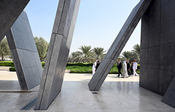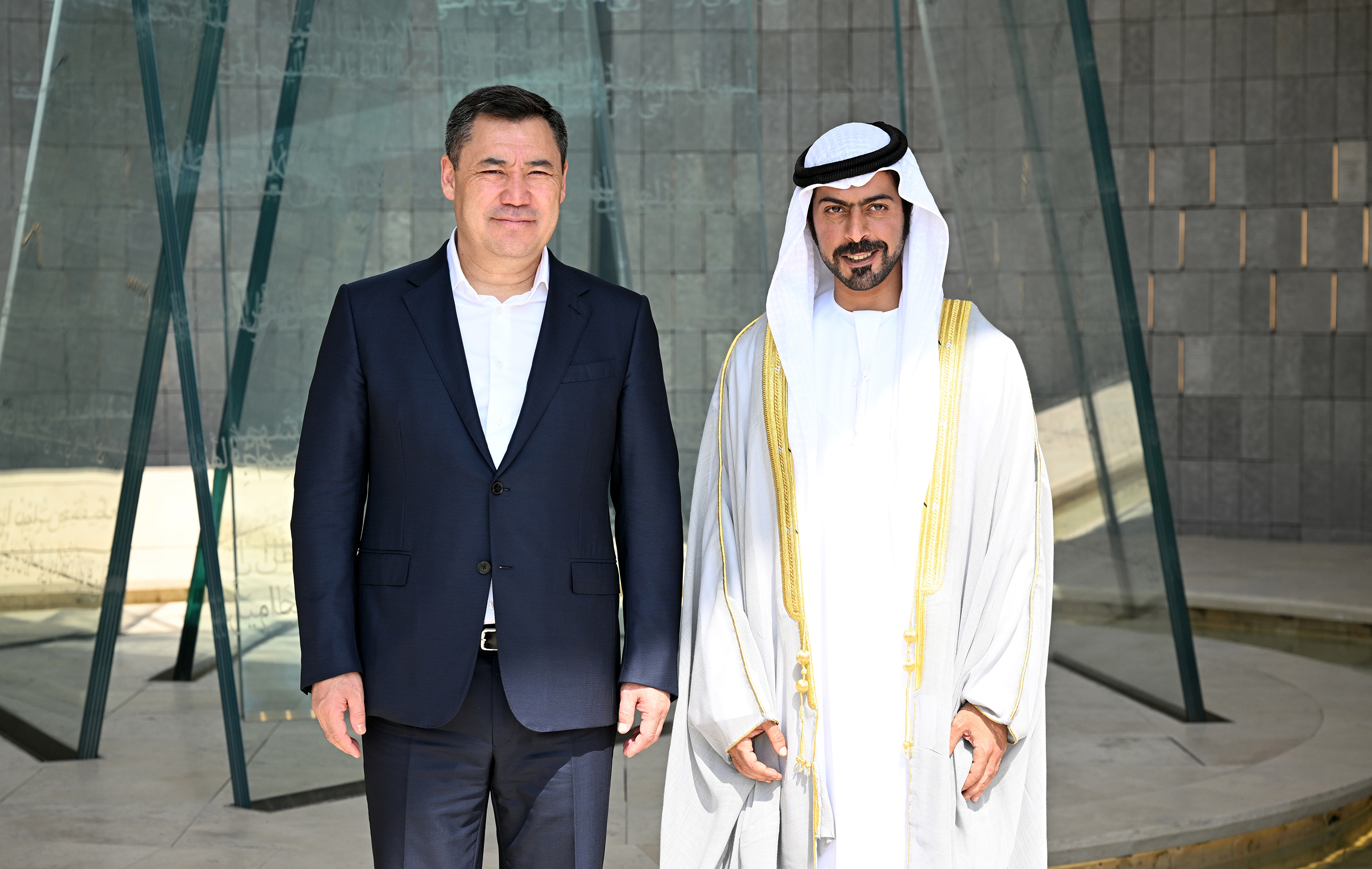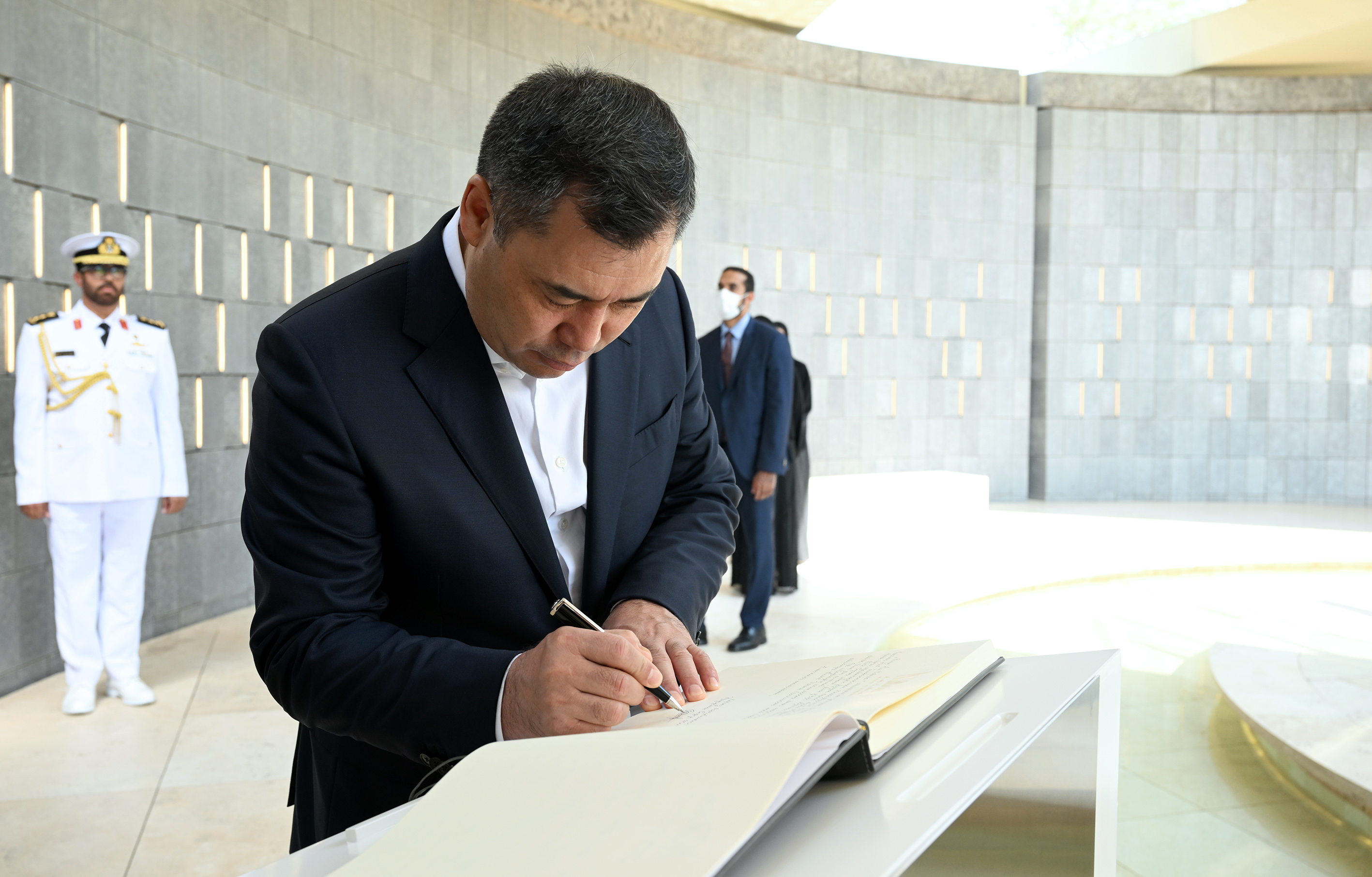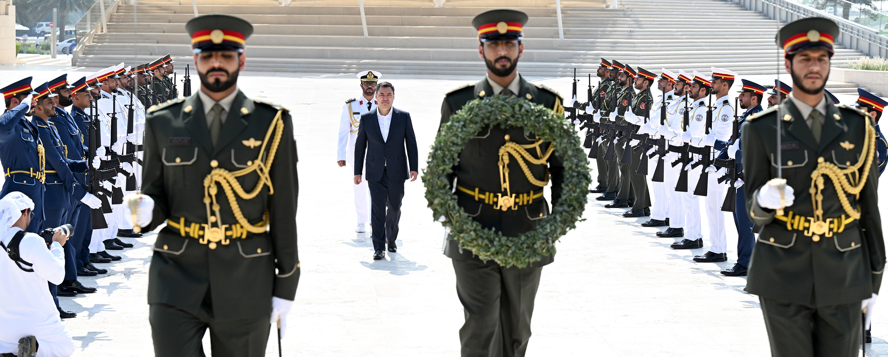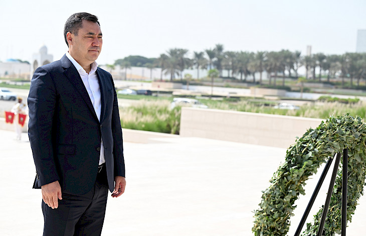 Мамлекет башчысы каз катар тизилген Ардак кароол аркылуу өтүп, мемориалга гүлчамбар коюп, БАЭнин өз өлкөсү үчүн курман болгон жоокерлеринин, укук коргоо органдарынын кызматкерлеринин, дипломаттары менен жарандык кызматкерлеринин элестерине таазим кылды.