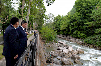 Буга чейин жетишилген келишимдерди ишке ашыруу маселелерине токтолуп, мамлекет башчысы Masdar компаниясы тарабынан күн электр станциясынын курулушуна өзгөчө маани берилерин айтып, Кыргызстан аталган долбоордун алкагында өз милдеттенмелерин өз убагында аткарарын баса белгиледи.