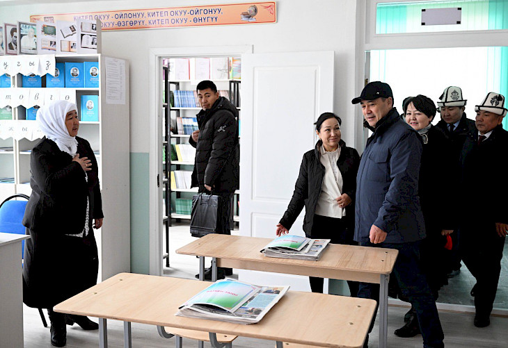 Андан соң мамлекет башчысы 275 орунга ылайыкталган жаңы мектептин имаратын карап чыкты. Ага окуу класстары, спорт залы, ашкана, китепкана жана башка жайлары көрсөтүлдү.
