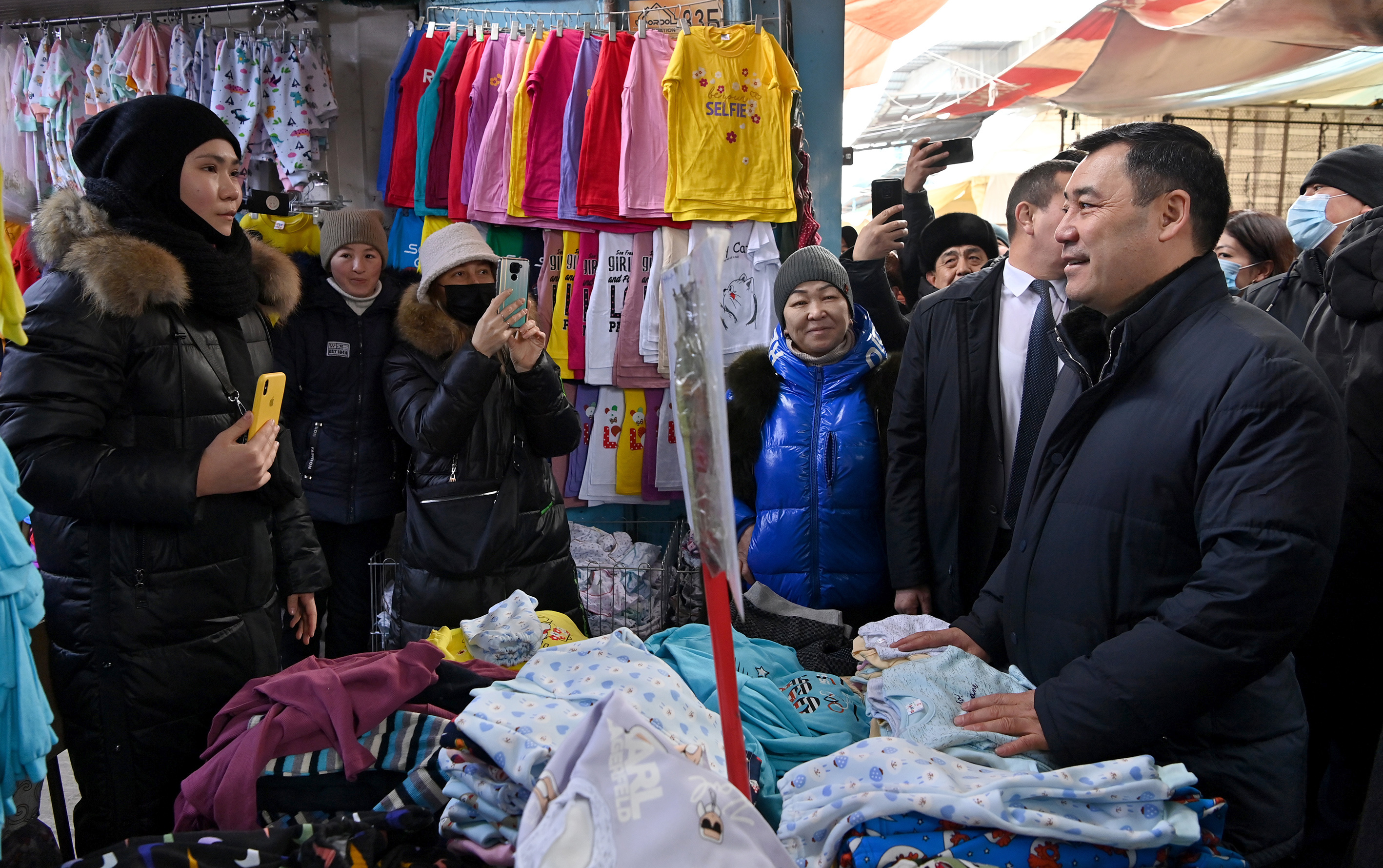Бишкек, 08.02.22. /Кабар/. Президент Садыр Жапаров бүгүн, 8-февральда, Бишкек шаарында жайгашкан “Дордой” соода-базар комплексине жана “Ош базарына” барып, ишкерлер менен көзмө-көз сүйлөшүп, контролдук-кассалык машина (ККМ) системасын ишке ашыруунун жүрүшүн талкуулады жана түшүндүрүү иштерин жүргүздү. Бул тууралуу президенттин басма сөз кызматынан кабарлашты.