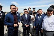 Бишкек, 30.08.23. /Кабар/. Президент Садыр Жапаров бүгүн Бишкек шаарынын чет-жакасындагы Орок айылына жаңы стадиондун курулушуна мезгил кутусун салды.