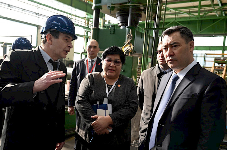 Мамлекет башчыга компаниянын продукциялары - жогорку чыңалуудагы электро-техникалык жабдууларды тейлөөчү трансформаторлор, кубаттуу электр кыймылдаткычтары, генераторлору жөнүндө маалымат берилди.