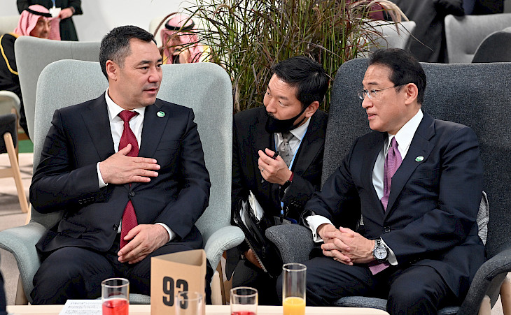 Бишкек, 02.11.21. /Кабар/. Бүгүн, 2-ноябрда, Глазго шаарында Дүйнөлүк лидерлеринин саммитинин аянтчасында Кыргыз Республикасынын президенти Садыр Жапаров Япониянын премьер-министри Фумио Кисида менен жолугушту. Бул тууралуу президенттин басма сөз кызматы билдирет.