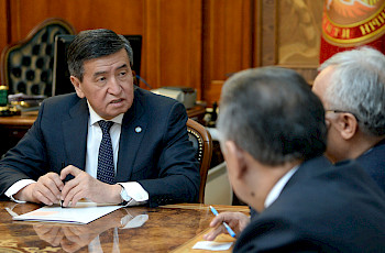 Бишкек, 21.11.23./Кабар/. Президент Садыр Жапаров бүгүн Д. Өмүрзаков атындагы борбордук стадиондл Кыргыз Республикасы менен Омандын улуттук курамаларынын ортосундагы футболдук беттешти көргөнү барды.