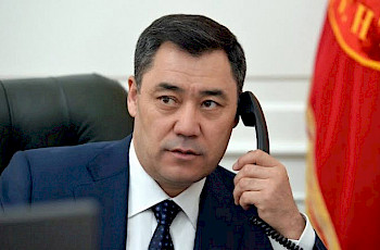 Бишкек, 07.06.24. /Кабар/. Президент Садыр Жапаров 6-июнда борбор калаадагы Дөлөн Өмүрзаков атындагы стадионго Кыргызстан менен Малайзиянын курама командаларынын футболдук беттешине барды.