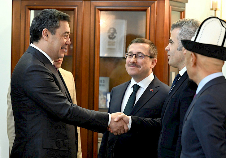 Бишкек, 12.03.24. /Кабар/. Президент Садыр Жапаров бүгүн Түркиянын Малатья шаарындагы Инөнү университетинин ректору, профессор, академик Ахмет Кызылай баштаган делегациясын кабыл алды.