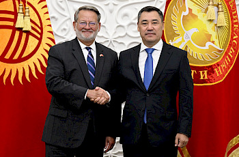Бишкек, 22.09.23./Кабар/. Президент Садыр Жапаров 21-сентябрда Уолл-Стритте жайгашкан Нью-Йорк фондулук биржасына (NYSE) барды.