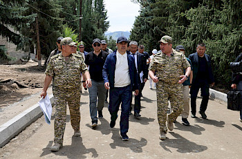 Бишкек, 15.04.21. /Кабар/. Кыргызстандын президенти Садыр Жапаров бүгүн, 15-апрелде, Бишкек шаарындагы Республикалык клиникалык жугуштуу оорулар ооруканасындагы «кызыл зонага» барды. Бул тууралуу президенттин аппаратынын маалыматтык саясат бөлүмү билдирет.