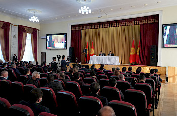 «Кыргыз тарап буга чейин аныкталган тышкы саясат багытын эч качан өзгөрбөйт жана Россия менен стратегиялык өнөктөштүк жана союздаштык мамилелерди мындан ары дагы чыңдоого жана бекемдөөгө өзгөчө маани берет. Мен өз ара аракеттенүүнү жана эки тараптуу кызматташууну илгерилетүү үчүн бардык зарыл болгон аракеттерди көрүүгө даярмын», - деп белгиледи Садыр Жапаров.