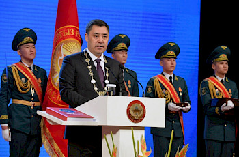 Мамлекет башчысын эстелик жайгашкан Баатырлар аянтында Ардак кароол тосуп алды.