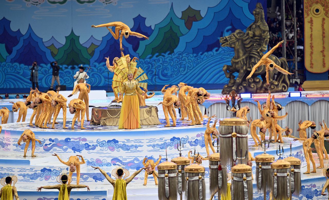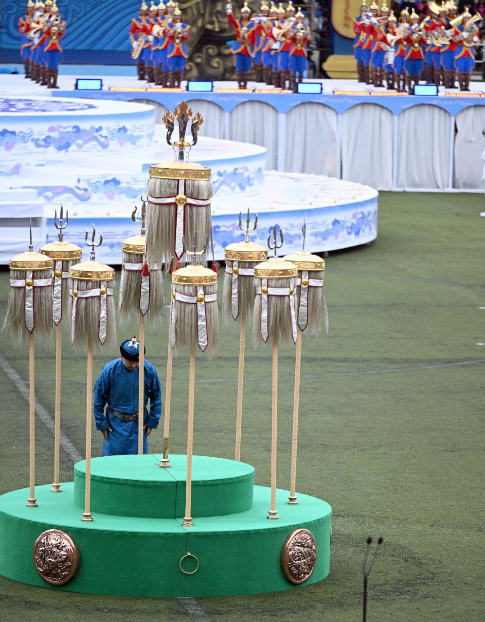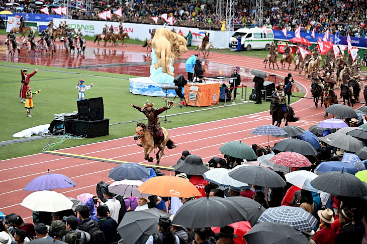 Монголиянын президенти Ухнаагийн Хурэлсух куттуктоо сөз менен чыгып, Тогуз ак бунчукка таазим кылып, Наадам майрамынын башталышын расмий жарыялады.