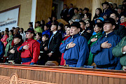 Бишкек, 11.07.23. /Кабар/. Президент Садыр Жапаров жана биринчи айым Айгүл Жапарова бүгүн Монголияга болгон мамлекеттик сапарынын алкагында ардактуу конок катары Улан-Батор шаарындагы Улуттук стадиондо өтүп жаткан улуттук Наадам майрамынын ачылыш аземине катышышты.