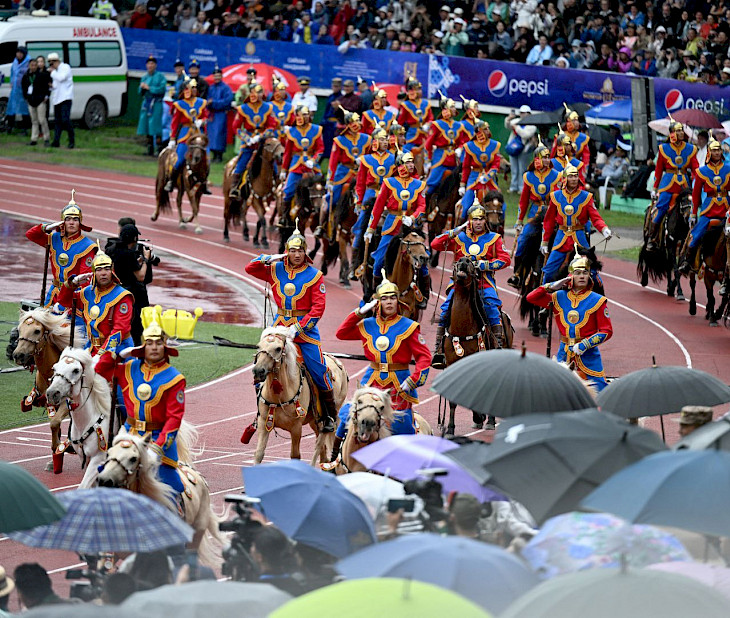 Наадам жыл сайын Монголиянын ар тарабында белгиленип, бул майрамда салттуу ат чабыш, күрөш жана жаа атуу өткөрүлөт.