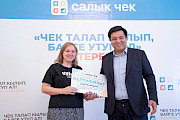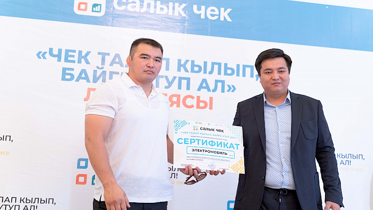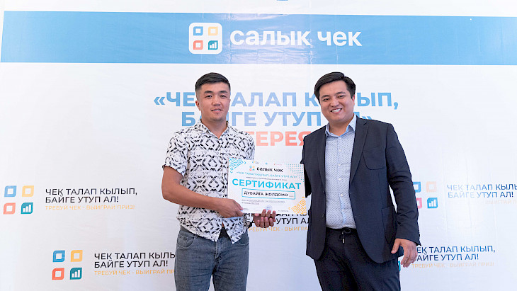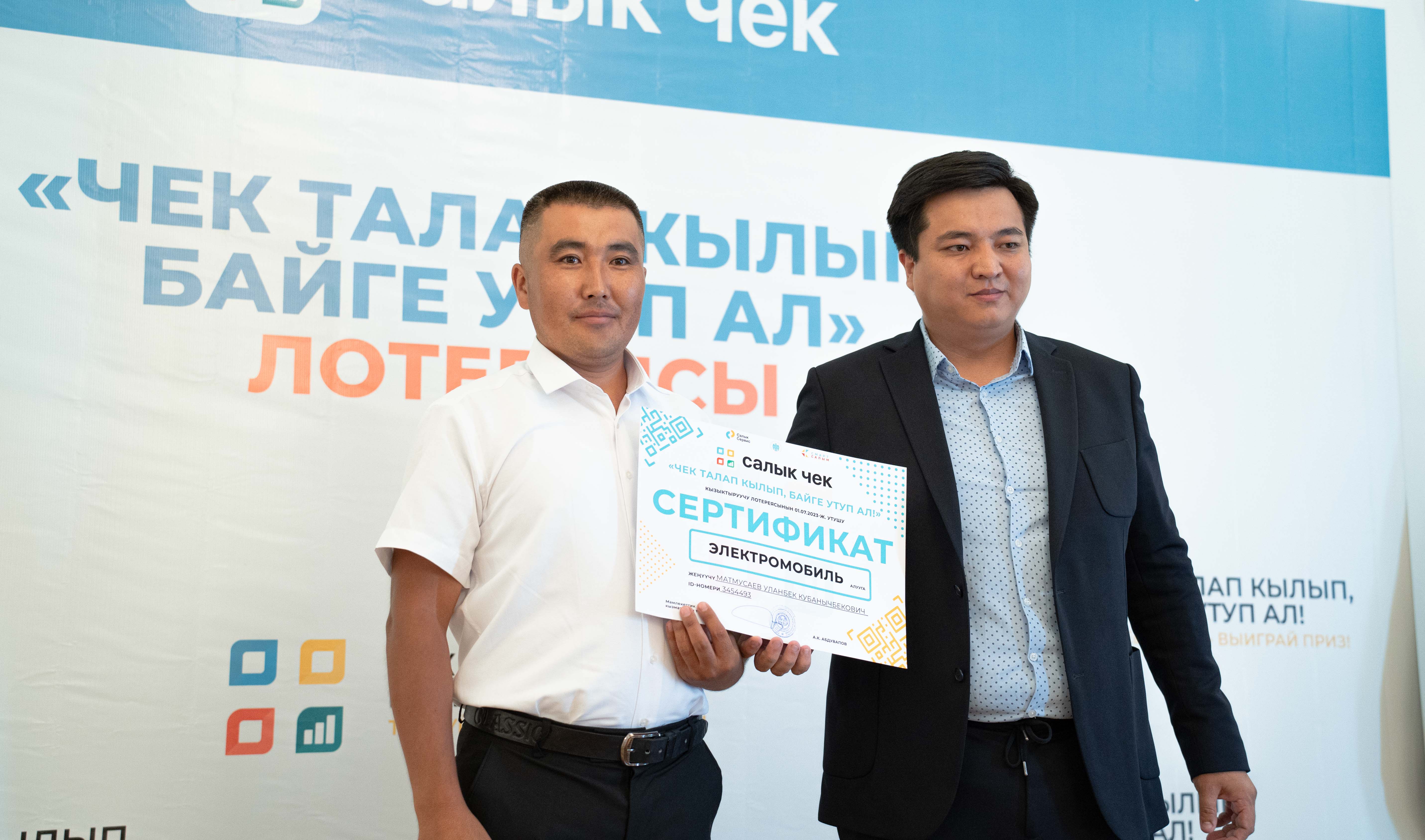 Бишкек, 01.08.23. /Кабар/. Мамлекеттик салык кызматы 26-июндан 1-июлга чейинки өткөрүлгөн "Чек талап кылып, байге утуп ал!" лотереясынын биринчи этабынын жеңүүчүлөрүнө сертификаттарды тапшырууну баштады.