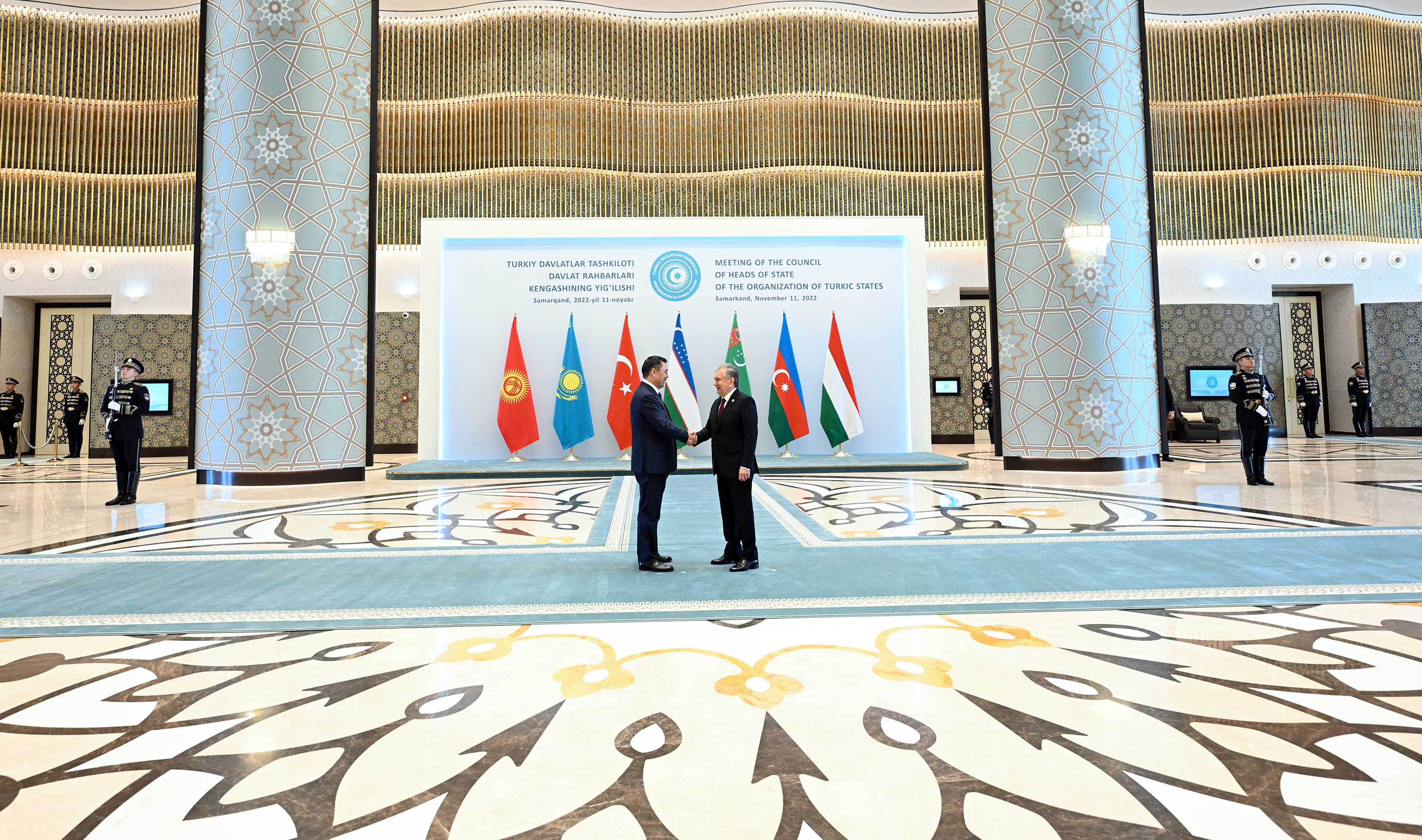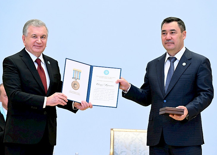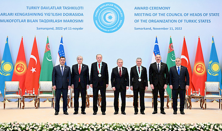 Бишкек, 11.11.22. /Кабар/. Кыргызстандын президенти Садыр Жапаров бүгүн, 11-ноябрда, Самарканд шаарында (Өзбекстан Республикасы) өткөн Түрк мамлекеттер уюмуна (ОТГ) мүчө-өлкөлөрдүн тогузунчу Саммитинин жыйынына катышты.