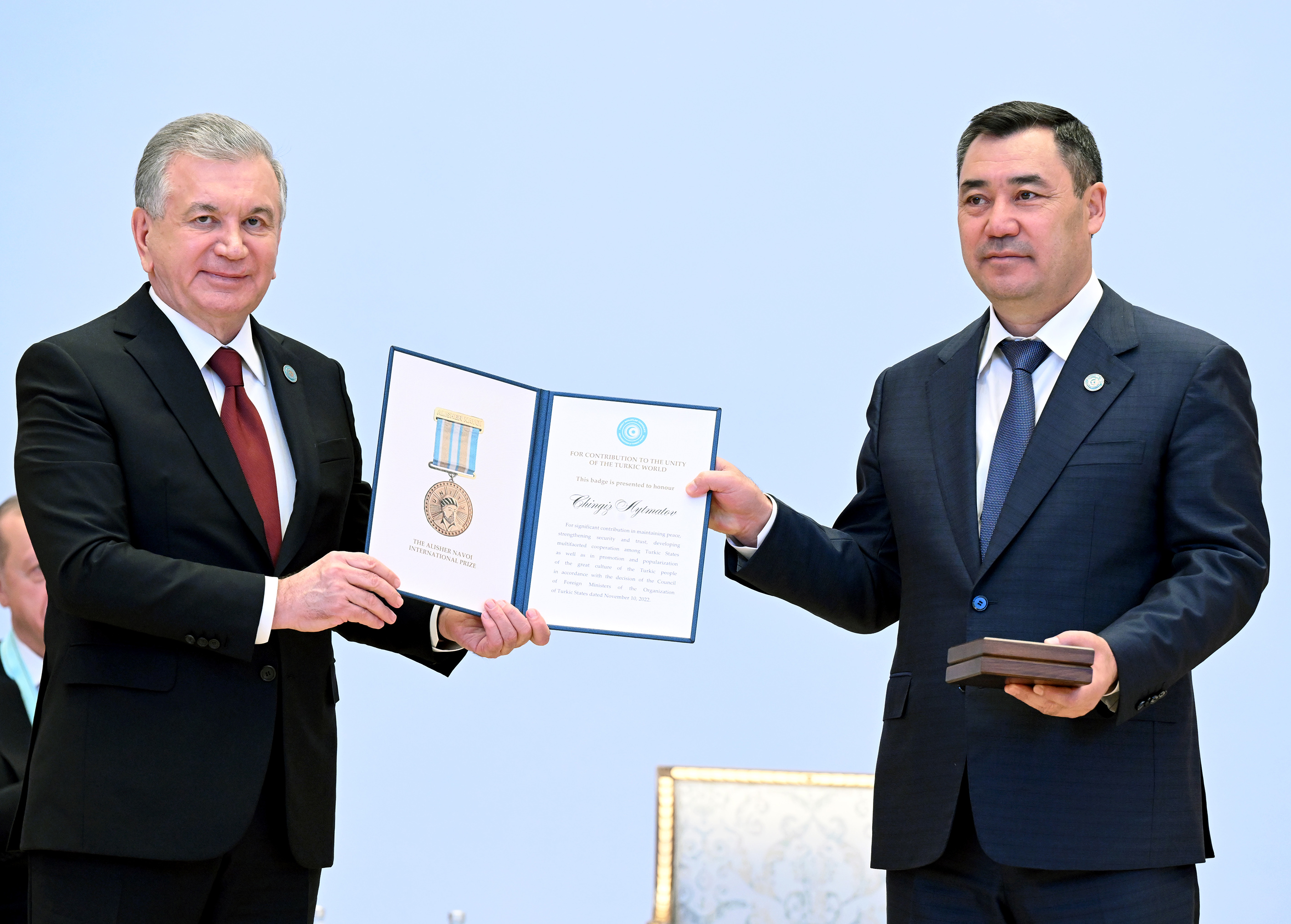 Мындан тышкары, чыгаан жазуучу Чыңгыз Айтматовго көзү өткөндөн кийин Алишер Навои атындагы «Түрк дүйнөсүнүн биримдигине кошкон салымы үчүн» эл аралык сыйлыгы ыйгарылды.