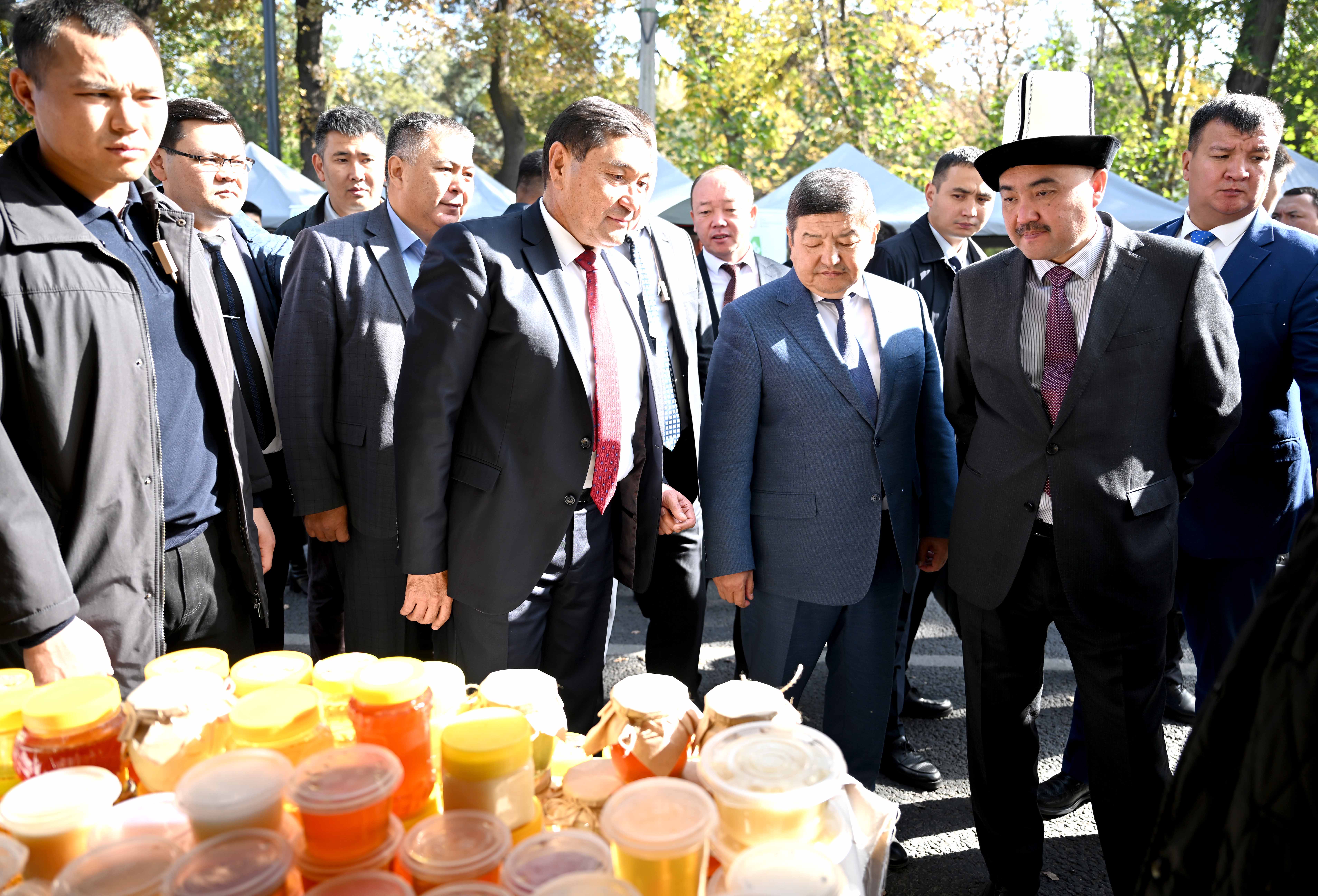 Мындан сырткары, министрлер кабинетинин төрагасы Акылбек Жапаров баштаган тиешелүү жетекчилер менен бирге “АгроТехЭкспо-2023” агроөнөржай көргөзмөсүн жана “Алтын күз” айыл чарба азыктарынын жарманкесин көрүп чыкты.