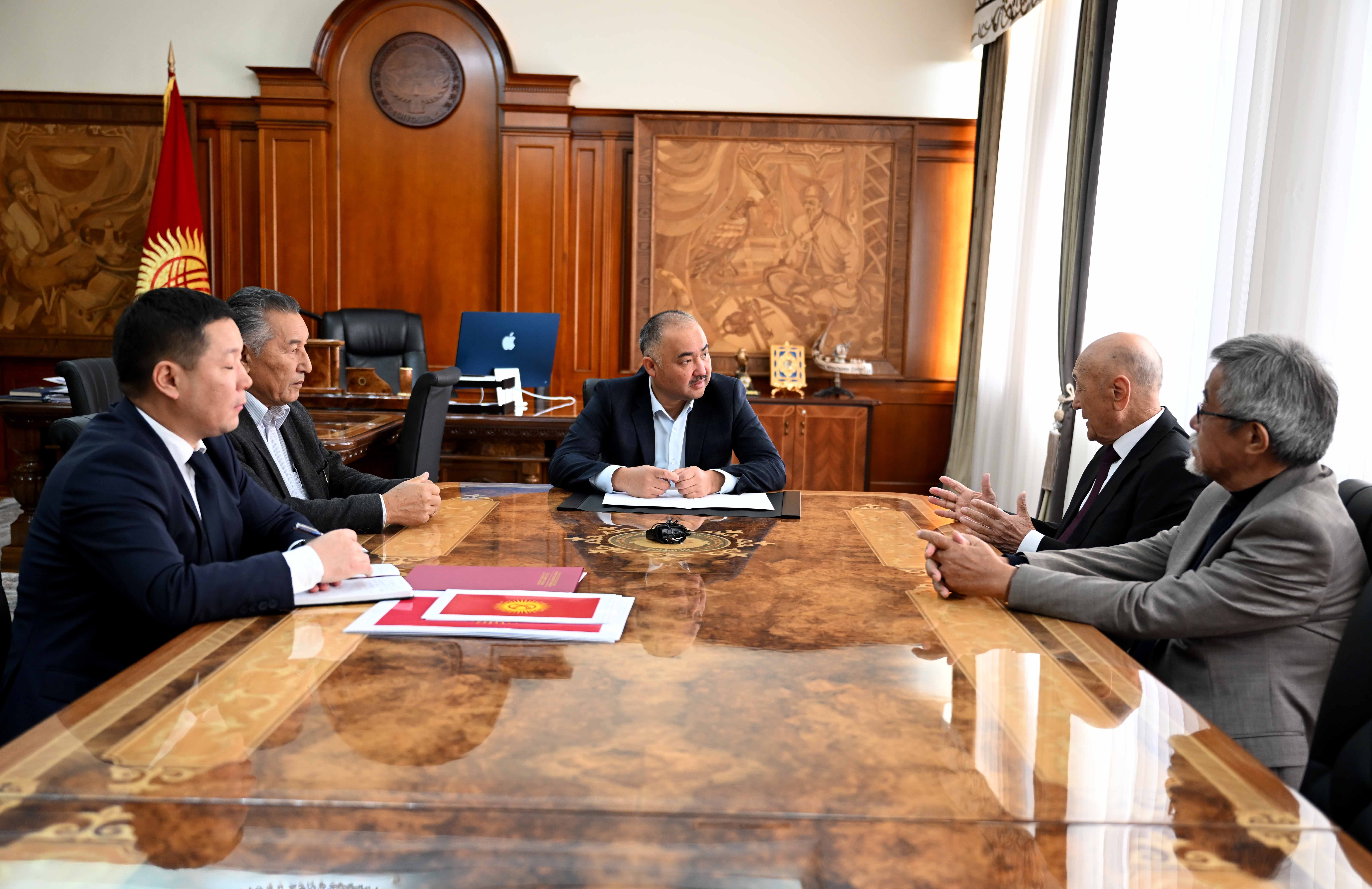 Бишкек, 24.10.23. /Кабар/. Бүгүн, 24-октябрда Жогорку Кеңештин төрагасы Нурланбек Шакиев мамлекеттик жана коомдук ишмер Медеткан Шеримкулов, КР мамлекеттик туусунун авторлору Жусуп Матаев жана Бекбосун Жайчыбековдор менен жолугушуп, башкы мамлекеттик символду өзгөртүүгө байланышкан сунуштарын укту.