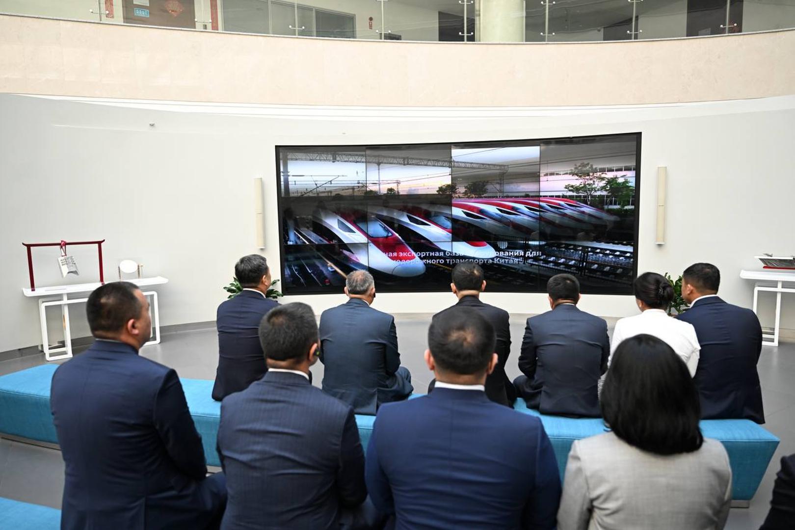 Анын ичинен төрага Циндао шаарындагы темир жол транспортторун чыгаруучу ишканага барды. Алсак, 1900-жылы ачылган тарыхы узак ишкана азыркы тапта заманбап темир жол унааларын, алардын катарында жаңы муундагы ыкчам жүрүүчү “Фусин” поезддерин жасап чыгарат. Ылдамдыгы саатына 350 чакырымды түзгөн заманбап поезддер Кытайда гана эмес, дүйнөнүн алдыңкы калааларында колдонулууда.