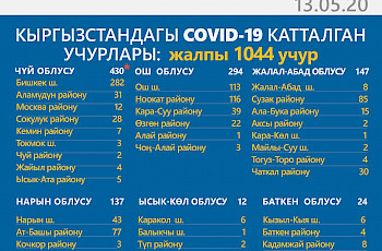 Белгилей кетсек, Кыргызстанда коронавирус жуктурган учурлардын саны 43 миң 23тү түзөт. Алардын ичинен 36 миң 397 киши айыгып чыкты, 1 миң 56 адам каза болду