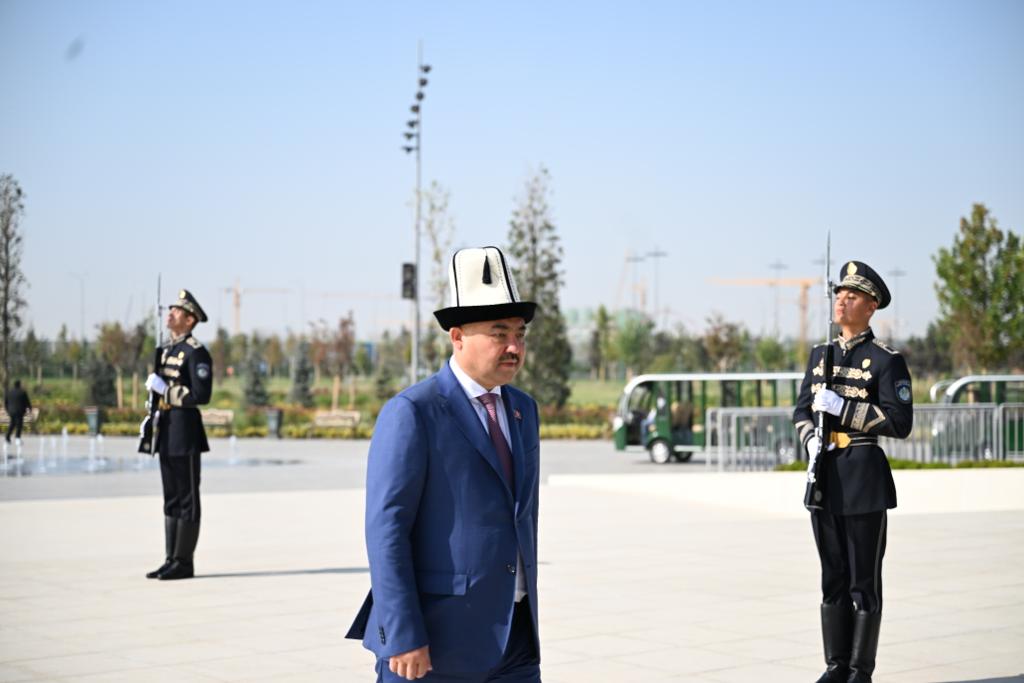 Бишкек, 26.09.23. /Кабар/. Бүгүн Жогорку Кеңештин төрагасы Нурланбек Шакиевдин Өзбекстанга расмий иш сапары Ташкент шаарындагы "Эгемендүүлүк" монументине гүлчамбар коюу менен башталды. Бул тууралуу ЖКнын Коомчулук жана ЖМК менен байланыш бөлүмүнөн кабарлашты.