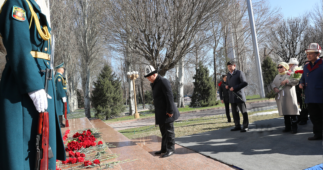 Жалал-Абад облусуна караштуу Аксы районунун Боспиек айылында мындан он алты жыл мурун катталган кайгылуу окуяда каза болгондорду эскерүү үчүн парламент депуттары менен аппарат кызматкерлери Ала-Тоо аянтындагы Аксы, апрель окуяларынын курмандыктарына арналып тургузулган монументке гүлчамбарларды коюшту.