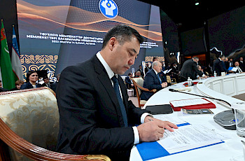 Ошондой эле төрага Кыргызстан эки тараптуу мамилелерди арттырууга өзгөчө басым жасарын белгилеп, кызматташтыкты стратегиялык өнөктөштүктүн алкагында өнүктүрүү керектигин кошумчалады.