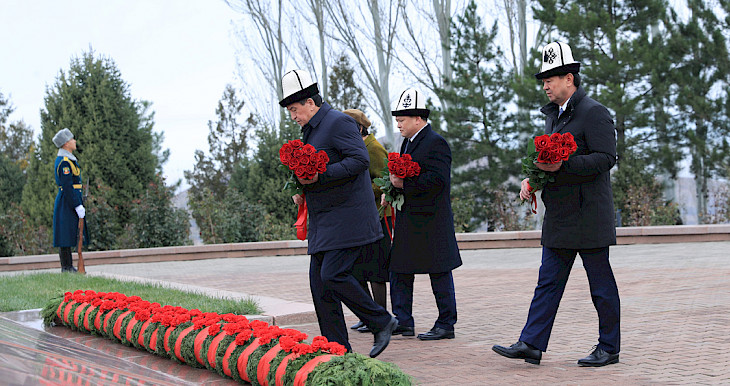 Бишкек, 07.11.18. /Кабар/. Бүгүн, 7-ноябрда Кыргыз Республикасынын Президенти Сооронбай Жээнбеков, Жогорку Кеӊеш Төрагасы Дастанбек Жумабеков, Премьер-министр Мухаммедкалый Абылгазиев жана Жогорку Соттун Төрайымы Гүлбара Калиевалардын катышуусу менен “Ата-Бейит” Улуттук тарыхый-мемориалдык комплексинде Тарых жана ата-бабаларды эскерүү күнүнө арналган иш-чара болуп өттү. Бул тууралуу ЖКнын басма сөз кызматы кабарлайт.