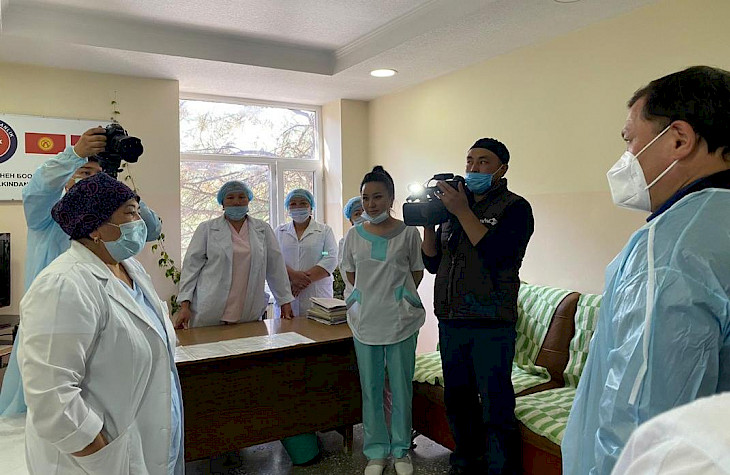 Дастанбек Жумабеков Талас райондук ооруканасына жасаган иш сапарынын алкагында жаңы төрөлгөн ымыркай жана жаш эне менен таанышып, аларга чың ден соолук жана үй-бүлөлүк бакыт каалады.