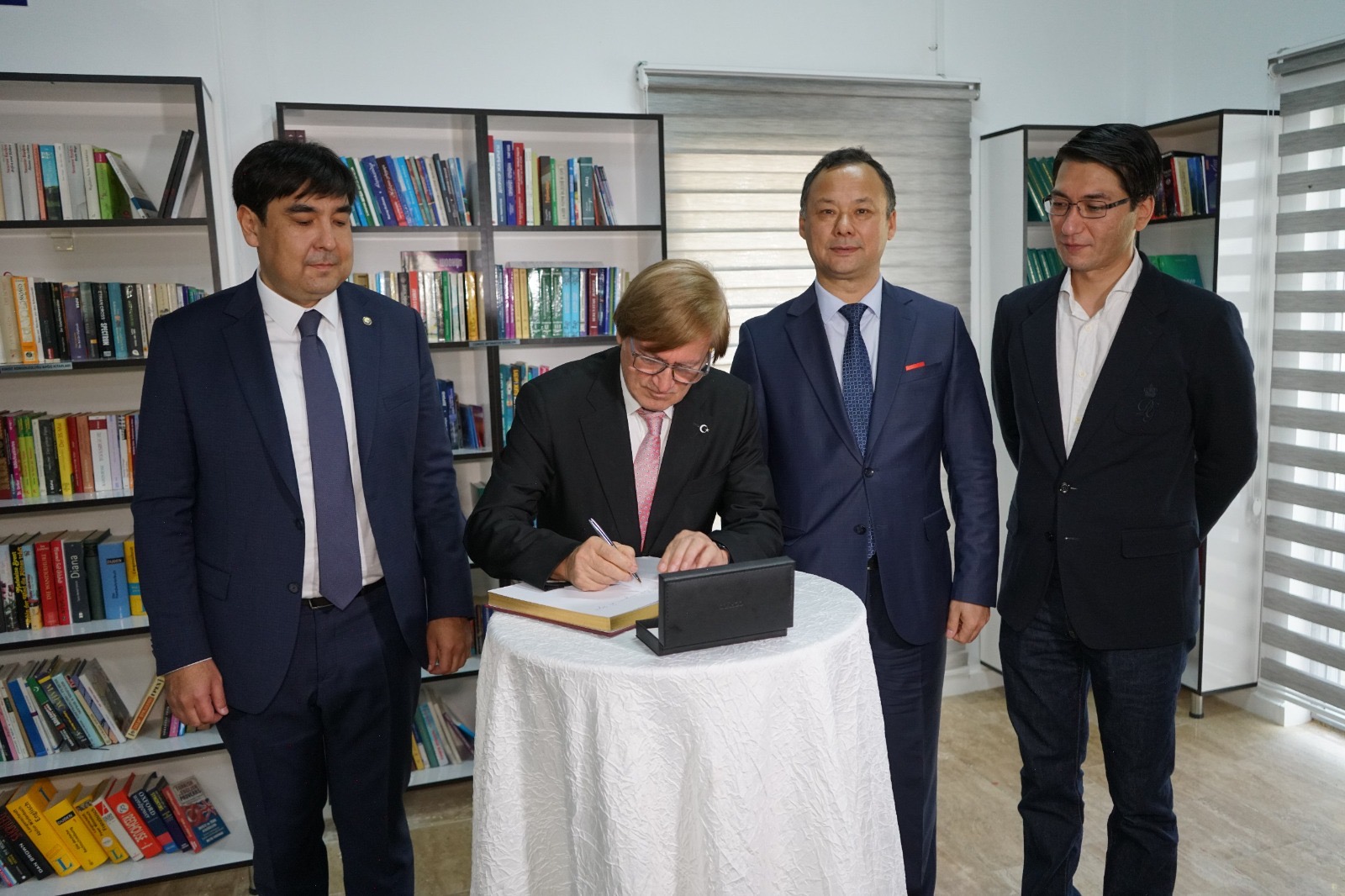 Андан тышкары, элчи китепкананын ачылышы түрк элинин жазуучуга болгон терең урмат-сыйынын бир көрүнүшү экендигин айтты.