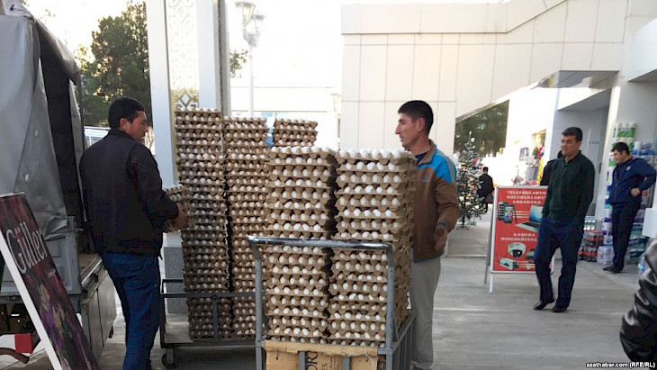 Былтыр декабрдын ортосунда Түркмөнстанда тоок жумурткасынын баасы жогорулаган. Бир жуманын ичинде эле борбордогу базарларда жумуртка орточо 80-100 пайызга кымбаттап кеткен.