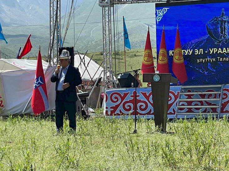 Иш-чара жүрүшүндө Кыргыз Республикасынын Мамлекеттик катчысы Сүйүнбек Касмамбетов улуу тарыхка жана санжырага бай болгон уюткулуу улуу журтубуздун кылымдарды карыткан нарк насили, каада салты, үрп-адаттары тууралуу кеңири баяндама жасады.