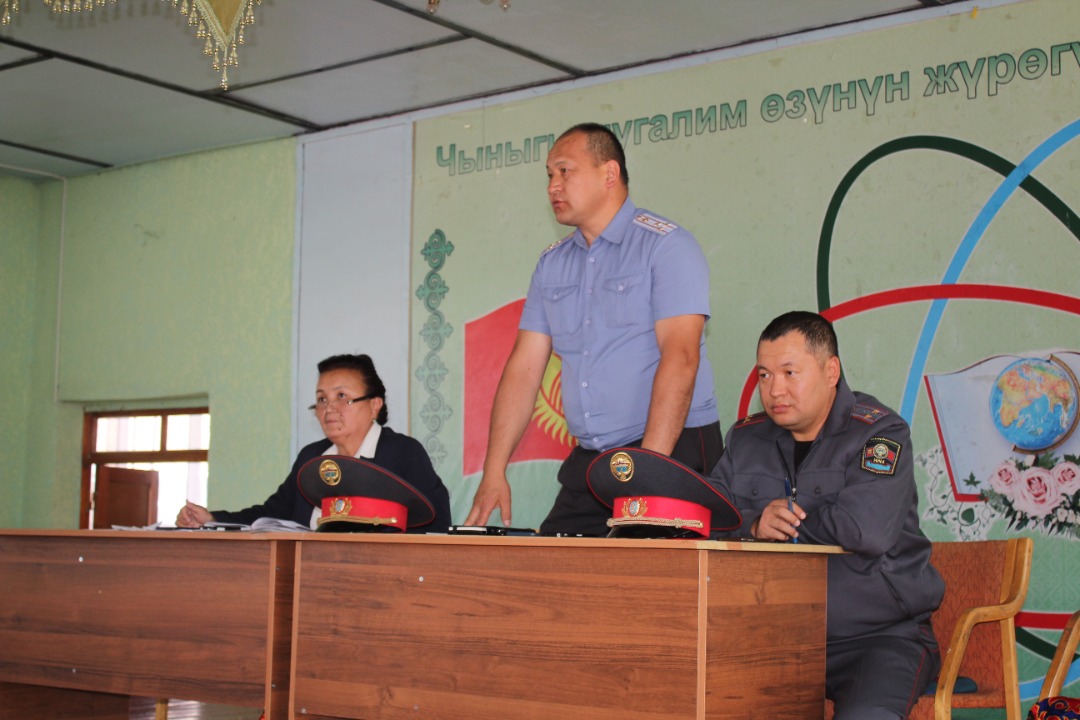 Чогулушта Талас ОИИБнын начальнигинин орун басары Ш. Кушбеков ата-энелерге жолугушуунун негизги максаты жашы жете элек өспүрүмдөргө карата зордук-зомбулукту, ыплас аракеттерди, укук бузууларды жана топтошуп мушташууларды алдын алууда ата-энелер да милиция кызматкерлерине тарбиялык жактан жардам берүүсү зарыл экенин айтты.