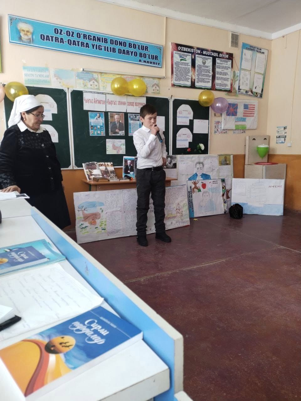 Ташкент, 14.12.23. /Төлөнбай Курбанов – Кабар/. Ташкент облусунун Бостандык районундагы №50 мектепте “Чыӊгыз Айтматов – кыргыз элинин залкар жазуучусу” аттуу адабий кече болуп өттү. Бул тууралуу “Кабар” агентигине аталган мектептин кыргыз тили жана адабияты мугалими Данахан Мадбаева билдирди.
