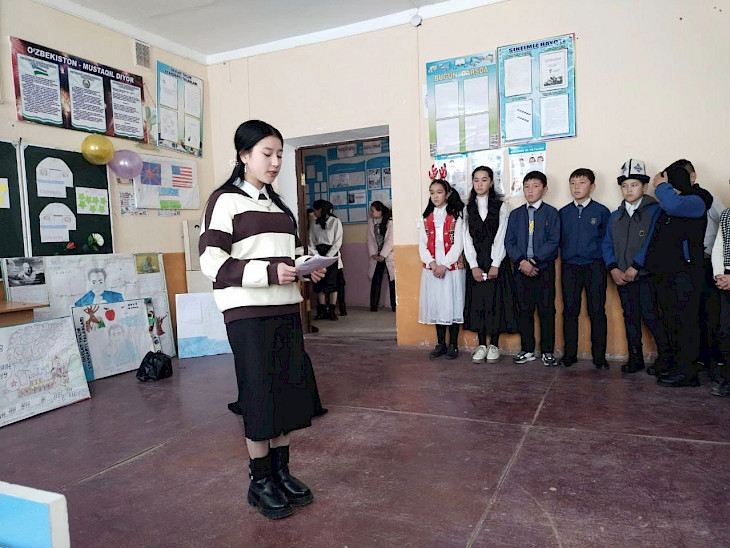Өзбекстан президентинин тажрыйбалуу мугалимдерди алыс жерде жайгашкан мектептерге тартуу боюнча кабыл алган чечимине ылайык, Д. Мадбаева үстүбүздөгү жылдын сентябрь айынан баштап ушул мектепте кыргыз тили жана адабиятынан сабак берип келет.