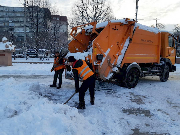 Бишкек, 23.12.19. /Кабар/. “Тазалык” муниципалдык ишканасынын жумушчулары эки күндөн бери шаардын көчөлөрүн, тротуарларды, аялдамаларды кардан тазалап жатышат.