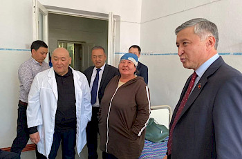Бөрүбеков бардык жабырлануучуларга керектүү медициналык жардам көрсөтүлүп, кандын компоненттери, дары-дармектер жана медициналык буюмдар жетиштүү санда бар экенин белгилейт.